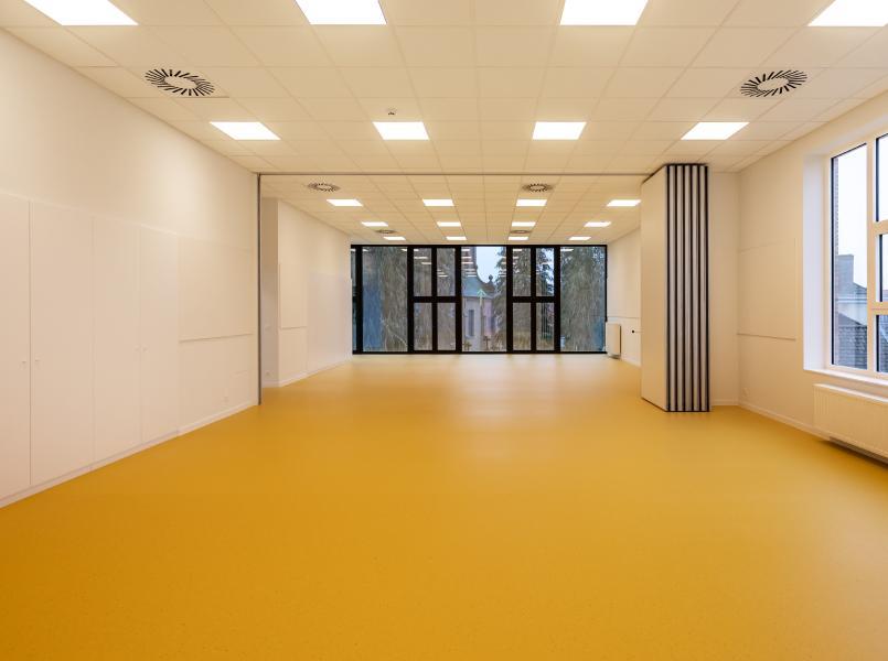 "Jest ona wyjątkowo odpowiednia jako podłoga sportowa, ale można po niej również chodzić w normalnym obuwiu podczas zajęć przedszkolnych i pozaszkolnych" - mówi architekt Bostoen. "Ten rodzaj podłogi został również użyty podczas renowacji sali gimnastycznej w Spanjeschool w Roeselare. Ta sala jest również wykorzystywana do zajęć wielofunkcyjnych i już otrzymaliśmy wiele pozytywnych reakcji na ten wybór podłogi. Gerflor wprowadził ostatnio kilka nowych kolorów w gamie, które przekonały nas do wyboru tego produktu."